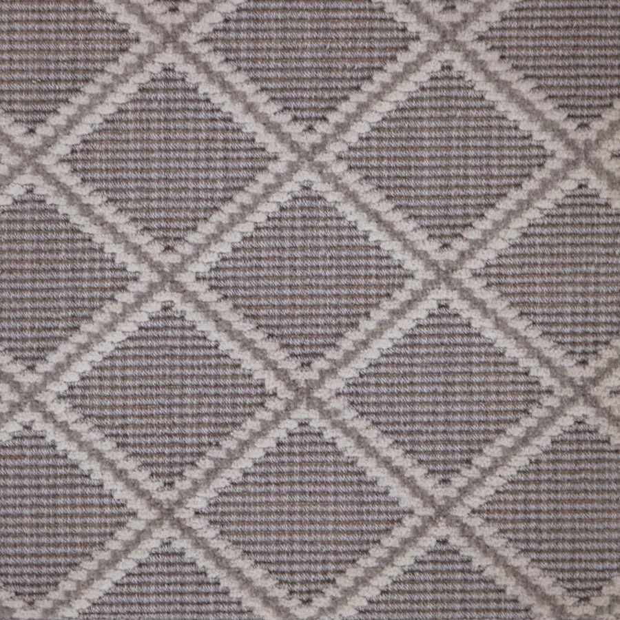 Hudson Residential Carpet by Fibreworks features a raised cut pile in a dimensional, diamond design. Made of 100% wool, these colors coordinate with the Alta Collection, featuring subtle neutrals and a classic blue.