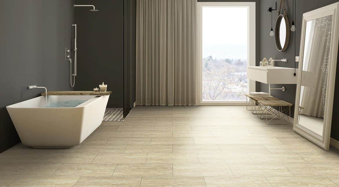 PIETRA – SANDSTONE WATERPROOF FLOORING by Engineered Floors is a vinyl flooring that is 100% waterproof and stain-resistant, making it a great choice for kitchens and bathrooms. This product also has high dimensional stability because of the rigid core feature.